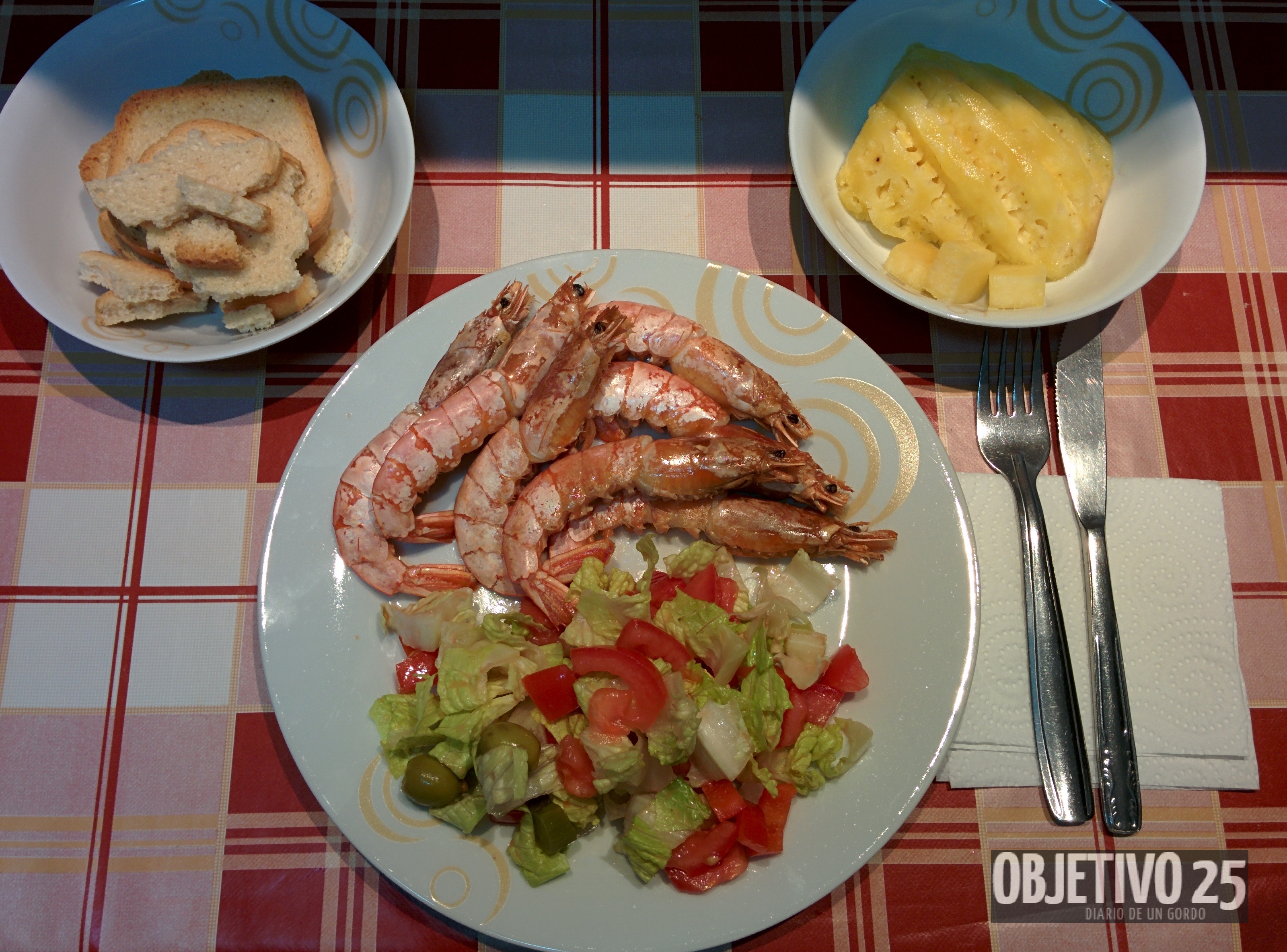 Para cenar no consigo acordarme de que es lo que hice. De postre acabé con la piña, eso seguro, y creo que hice una ensalada rápida de atún, surimi, tomate y lechuga, pero como digo no recuerdo